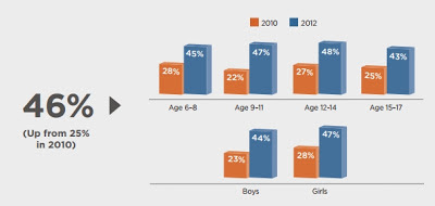 - El porcentaje de niños que ha leído un libro digital casi se ha duplicado desde 2010 (25% vs 46%).